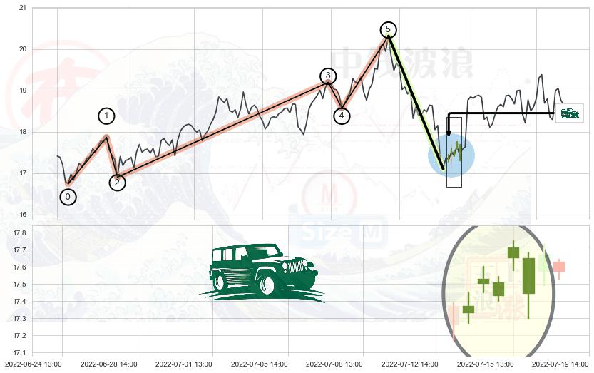 ➣ 波浪理论:猜想击穿破位c点后继续下跌 → 下跌 → 风险信号 → 小趋势跟踪