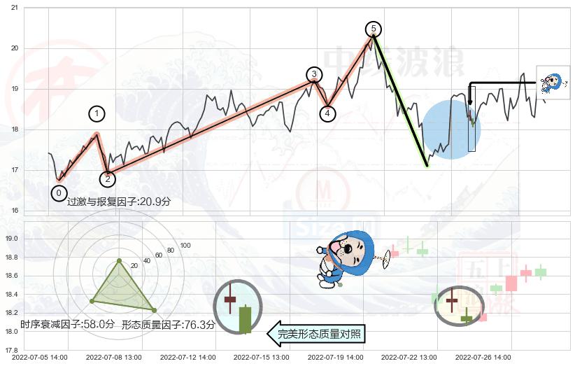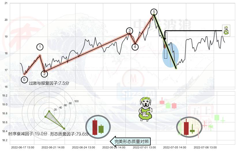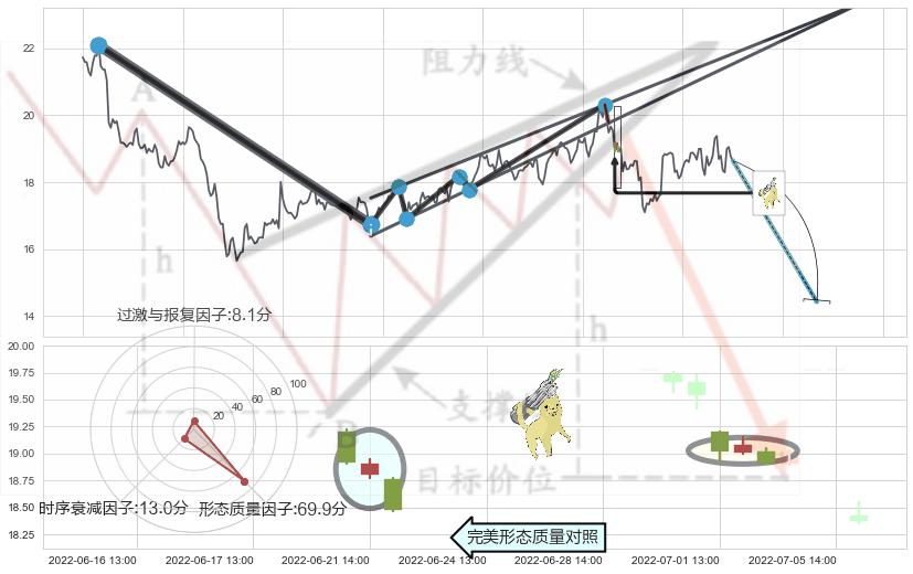 ➢ 🕰 价格走势在2022-07-13 14:00:00至2022-07-15 14:00:00期间形成高档五阴线,残存影响值:-0.91
