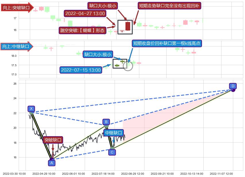 ➢ 跳空突破【蝴蝶】形态关键点后,后续非关键走势也无缺口回补迹象,突破缺口可信度提高
