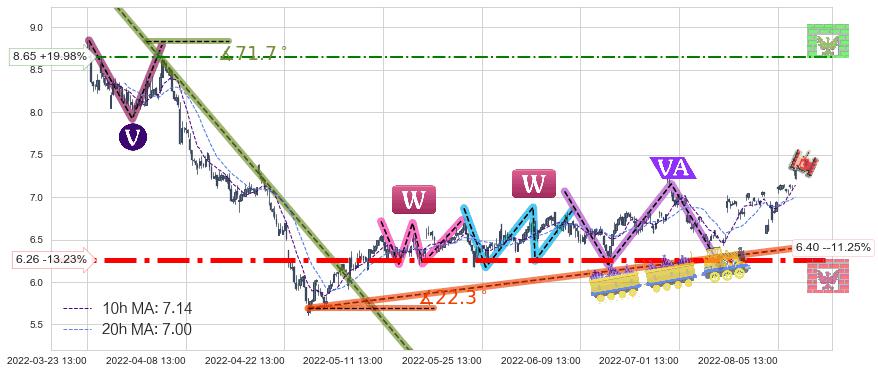 ♘ 支撑价格位6.26,可信任强度98.33%,距离最后交易2022-08-12 14:00形成的收盘价格7.21相差 -13.23%