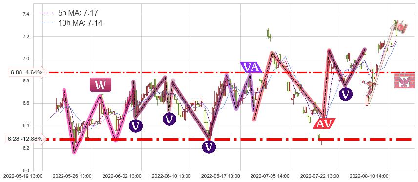 ♞ 5小时均线:7.17,10小时均线:7.14→ 快线>慢线