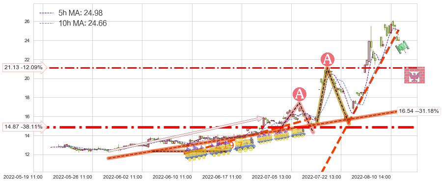 ➢ 预测:2022-08-25 11:00,【小幅回撤】稳定目前上涨趋势的前提下,预测价格:18.27