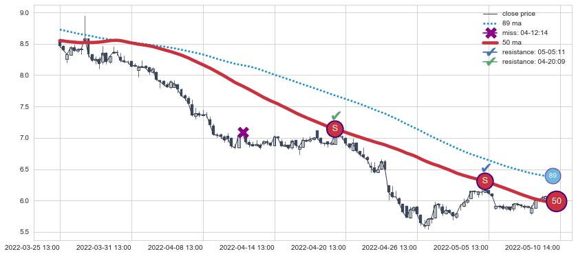 ➣ 34小时均线于(08-04 13:00: 7.05)形成【金叉】基于【金叉历史模型】预测金叉后最高波峰价格: 7.56, 金叉后最高价格7.82,已经上涨超出预测最高波峰价格, 预期回调
