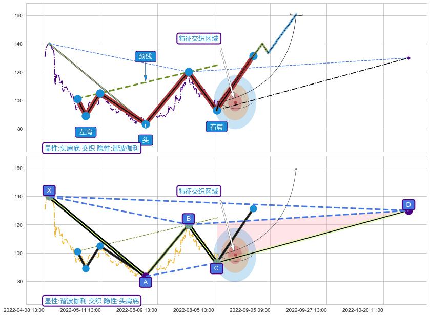 ➢ 头肩底与谐波伽利信号事件周期长度级别相同,同周期信号事件