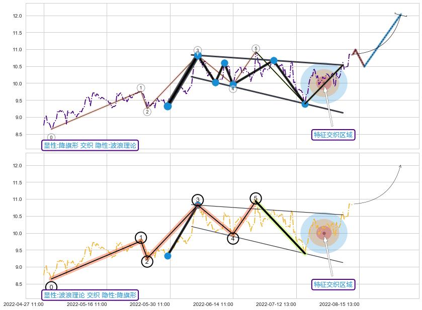 从2022-08-02 14:00至2022-08-12 14:00,共包含15个小时,阶段股价上涨9.38%,阶段股价变动位移路程比: 1 : 1.8,2022-08-03 13:00向⇪形成缺口,跳空上涨+4.14%
