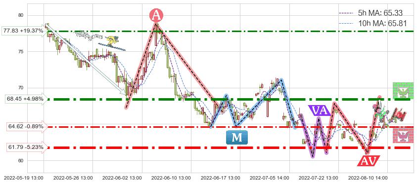 ♘ 阻力价格位68.45,可信任强度92.66%,距离最后交易2022-08-12 14:00形成的收盘价格65.20相差 +4.98%
