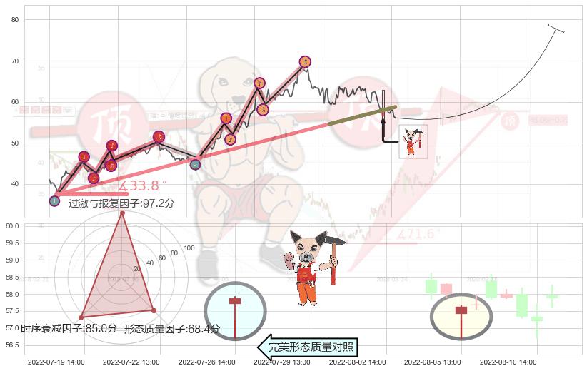 从2022-04-27 09:00至2022-07-08 14:00,共包含200个小时,阶段股价上涨49.57%,阶段股价变动位移路程比: 1 : 4,上涨趋势角度: 33.8