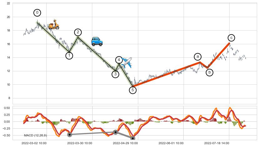 ➢ 波浪理论:猜想达到c点后小反弹终止反转下跌 → 下跌 → 【拐点】临近 → 阶段均值回复结束后继续大周期趋势跟踪