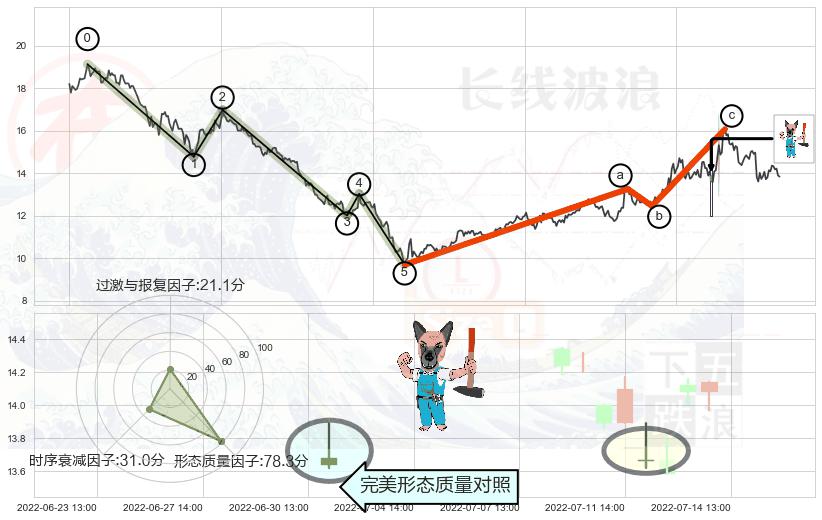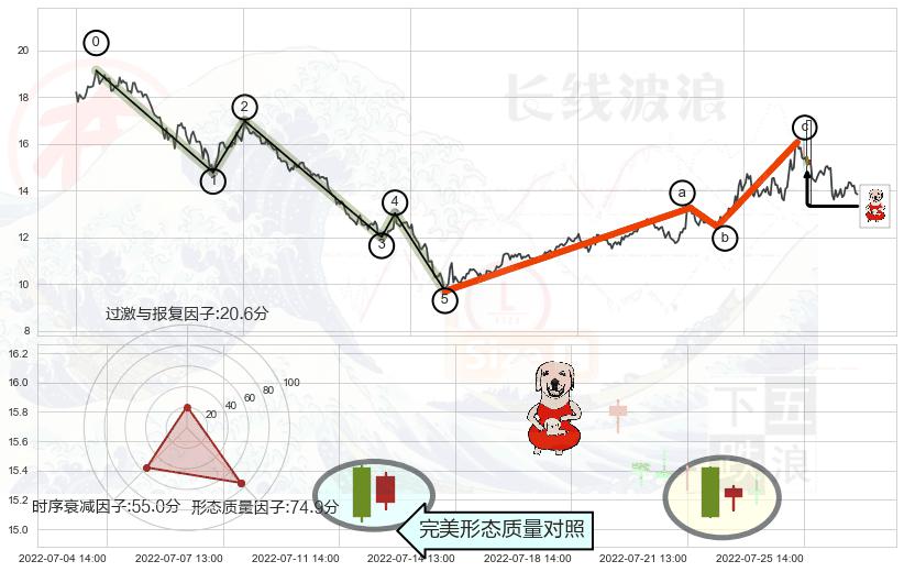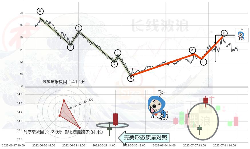 ➢ 🕰 价格走势在2022-07-13 14:00:00至2022-07-13 14:00:00期间形成单针探底(定海神针),残存影响值:3.86