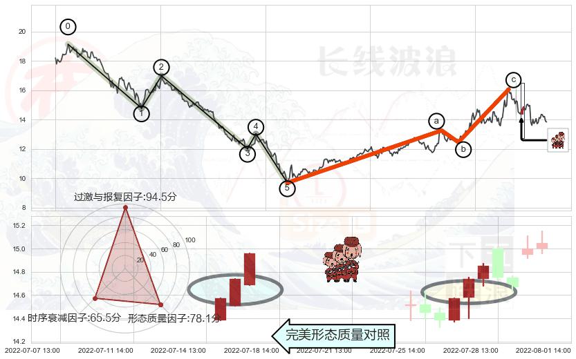 从2022-07-18 14:00至2022-08-12 14:00,共包含37个小时,阶段股价下跌-14.16%,阶段股价变动位移路程比: 1 : 3