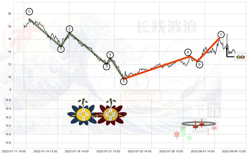 ➢ 波浪理论:猜想击穿突破c点后继续上涨 → 上涨 → 机会信号 → 小趋势跟踪