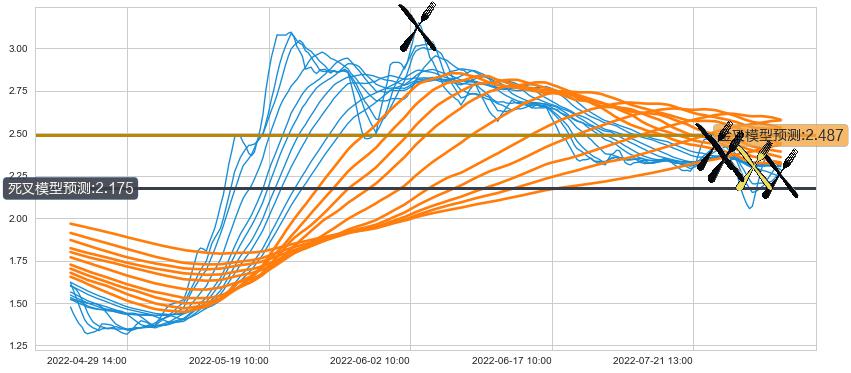 ➣ 40小时均线于(07-28 14:00: 2.352)形成【死叉】基于【死叉历史模型】预测死叉后最低波谷价格: 2.153, 死叉后最低价格2.030,已经下跌超出预测最低波谷价格, 预期反弹