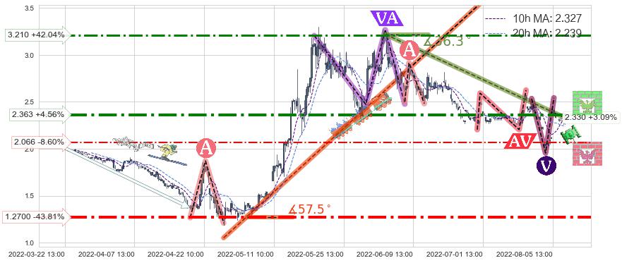 ♘ 阻力价格位3.210,可信任强度56.57%,距离最后交易2022-08-12 14:00形成的收盘价格2.260相差 +42.04%