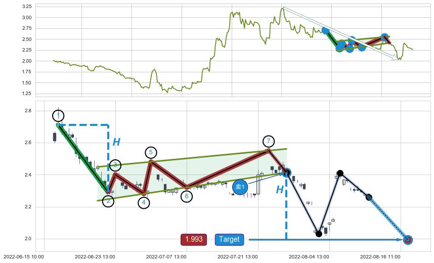 ➣ 最小中继整理跌幅→𝐇: 0.42000 (𝐇旗杆的长度:旗杆起点→顶点)