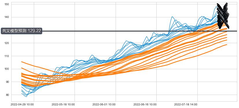 📉 多条均线基于【死叉历史模型】预测最低波谷价格的平均值: 129.22