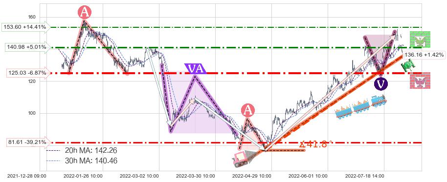 ♘ 阻力价格位140.98,可信任强度69.91%,距离最后交易2022-08-12 14:00形成的收盘价格134.25相差 +5.01%