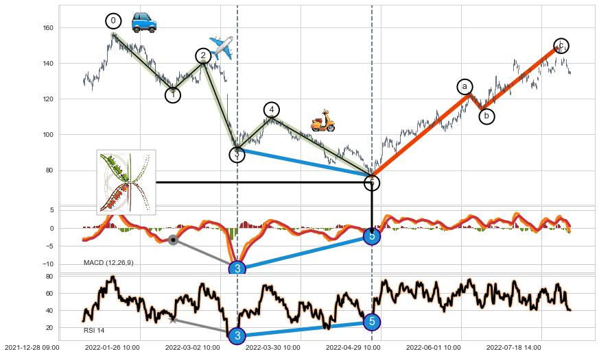 ➣ 波浪理论:猜想达到c点后小反弹终止反转下跌 → 下跌 → 【拐点】临近 → 阶段均值回复结束后继续大周期趋势跟踪