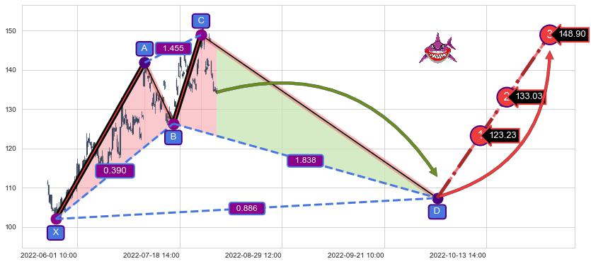 ➢ 谐波鲨鱼:猜想c点拉升击穿越过b点后泄力性下沉下跌(均值回复)