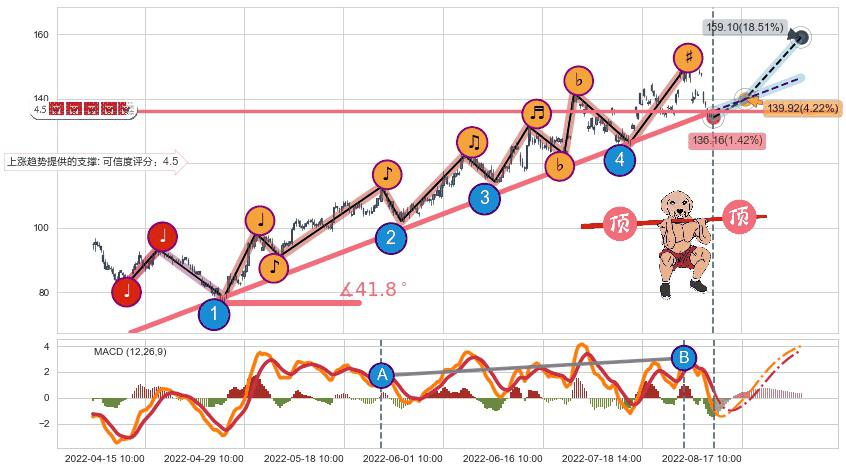 ➢ 预测:2022-08-17 12:00,【试探支撑】稳定目前上涨趋势的前提下,预测价格:139.92
