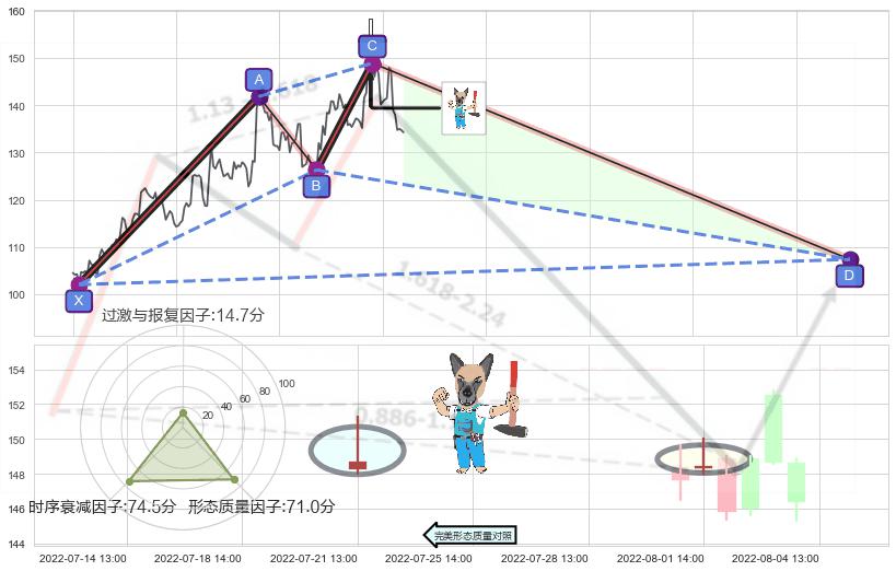 ➢ 谐波鲨鱼上拉击穿c下跌拐点 🔜 缠论买卖点上升缠:1卖回调拐点 综合量化分数:34.85 【强烈看空】