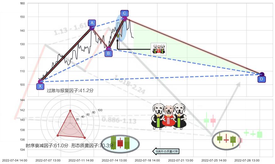 ➢ AB回撤位置在XA的39.0%,符合形态要求