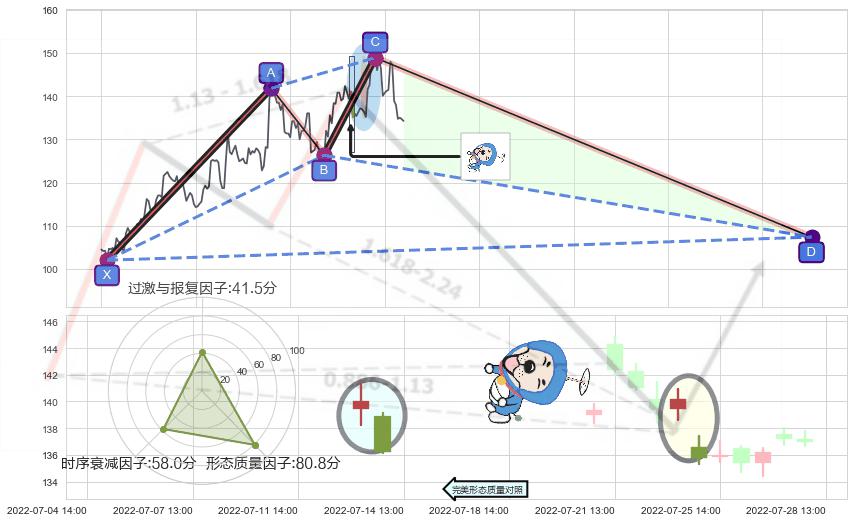➢ 谐波鲨鱼上拉击穿c下跌拐点 🔜 波浪理论c点反弹终止反转下跌 综合量化分数:39.47 【偏空】