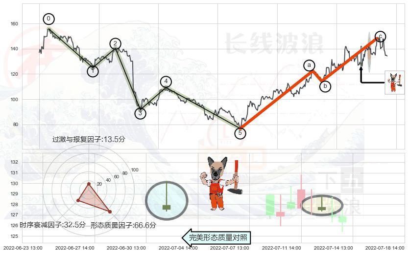 ➣ 调整浪已超过预测的c点位置,但后续大趋势循环浪高概率反转上涨,继续下跌概率46.37%,谨慎做空