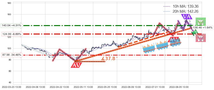 ♘ 阻力价格位140.04,可信任强度75.91%,距离最后交易2022-08-12 14:00形成的收盘价格134.25相差 +4.31%