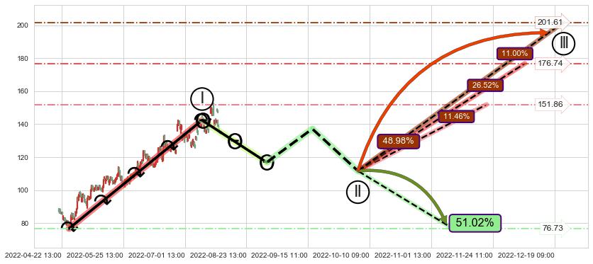 ➢ 高概率大级别循环上涨浪被破坏,反转向下(突破5浪起点)概率51.02%