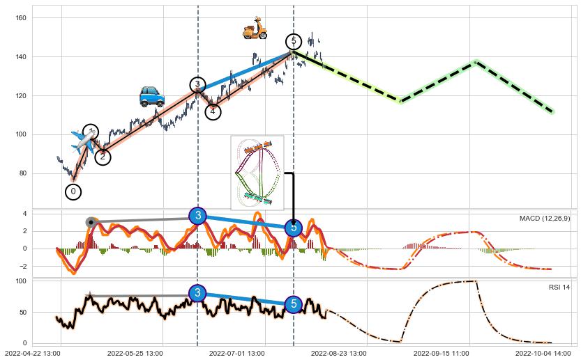 ➣ 波浪理论:猜想达到c点后小反弹终止反转下跌 → 下跌 → 【拐点】临近 → 阶段均值回复结束后继续大周期趋势跟踪