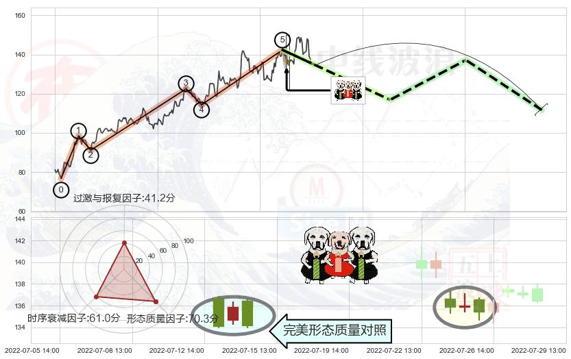 ➣ 射击之星形态 + 波浪理论上涨浪:浪5回调拐点信号叠加后【反向回撤率】极高,【看空】信号叠加【存续影响极小】