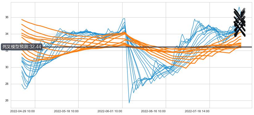 ➣ 30小时均线于(08-11 14:00: 34.53)形成【死叉】基于【死叉历史模型】预测死叉后最低波谷价格: 31.58, 死叉后最低价格33.54,尚未达到预测最低波谷价格, 预期继续下跌