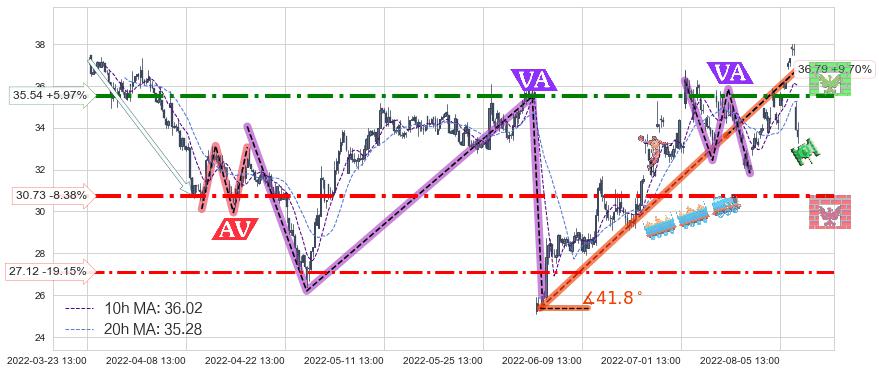 ♘ 阻力价格位35.54,可信任强度72.46%,距离最后交易2022-08-12 14:00形成的收盘价格33.54相差 +5.97%