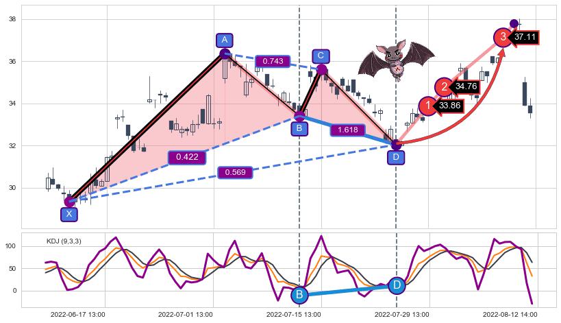 ➣ 已达成看涨【蝙蝠】形态全部的预期目标