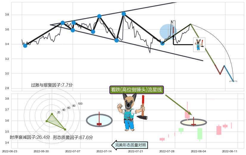 ➢ 🕰 价格走势在2022-08-02 00:00:00至2022-08-02 00:00:00期间形成看跌(高位倒锤头)流星线,残存影响值:-2.42