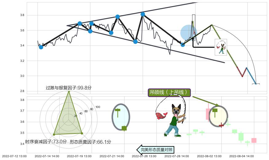 ➢ 🕰 价格走势在2022-08-01 14:00:00至2022-08-02 13:00:00期间形成吊颈线(上吊线),残存影响值:-6.84