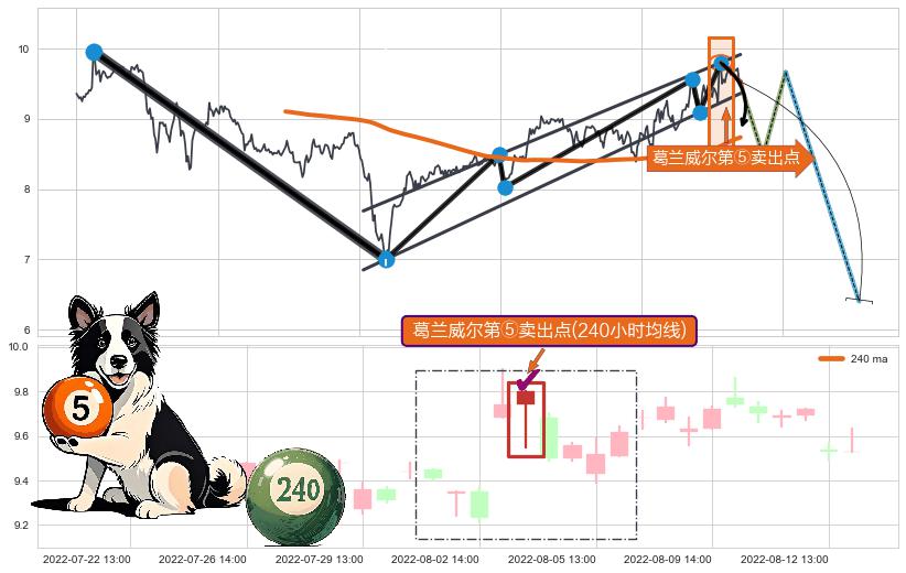 ➣ 🕰 价格走势在2022-07-28 14:00:00至2022-08-09 14:00:00期间形成葛兰威尔第⑤卖出点,残存影响值:-14.58