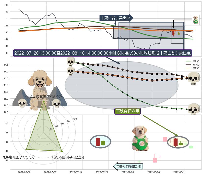 ✔︎ 高时效:下跌身怀六甲 + 【死亡谷】卖出点死亡谷均线交叉卖出点->综合量化分数: 44分
