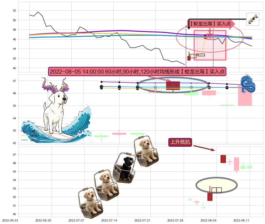 2022-08-05 14:00:00小时显现 60小时-90小时-120小时均线  【蛟龙出海】买入点 看多信号,后市看涨,买入