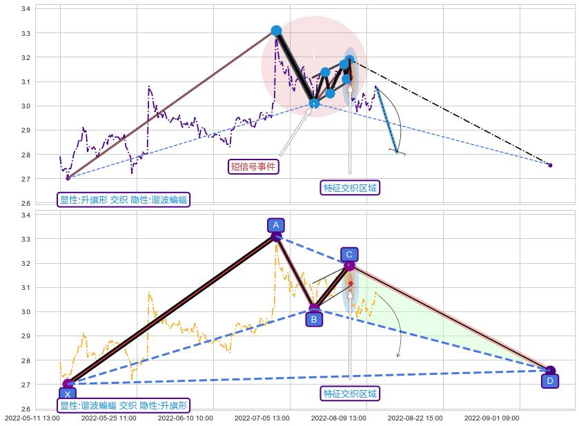 ➢ 升旗形属【短级别信号事件】谐波蝙蝠属【长级别信号事件】长短周期组合信号事件, 短长事件长度比24.63%