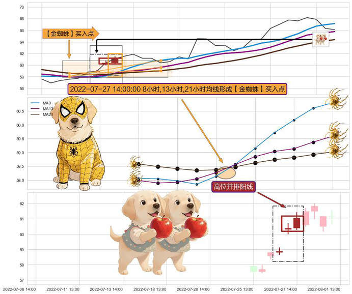 ➣ 2022-07-27 14:00:00小时显现 8小时-13小时-21小时均线 【金蜘蛛】买入点 看多信号,后市看涨,买入