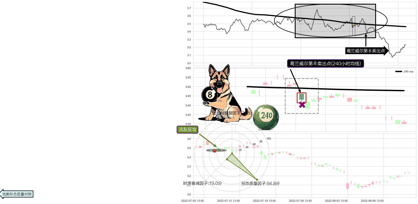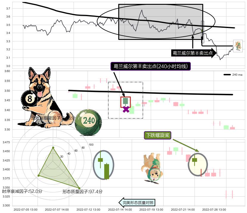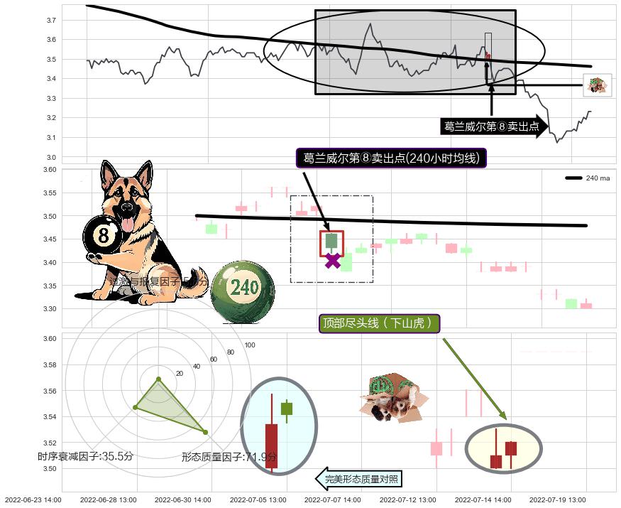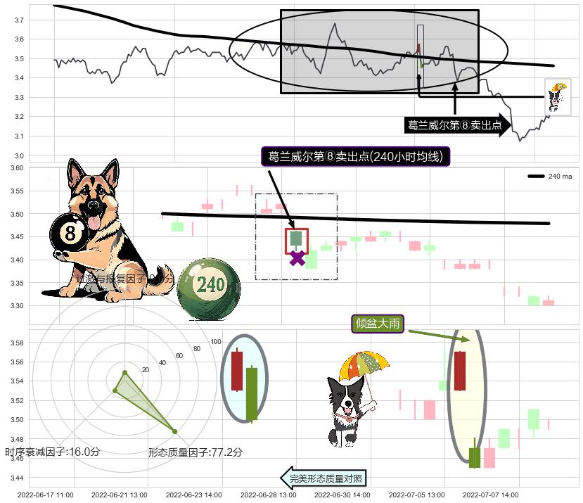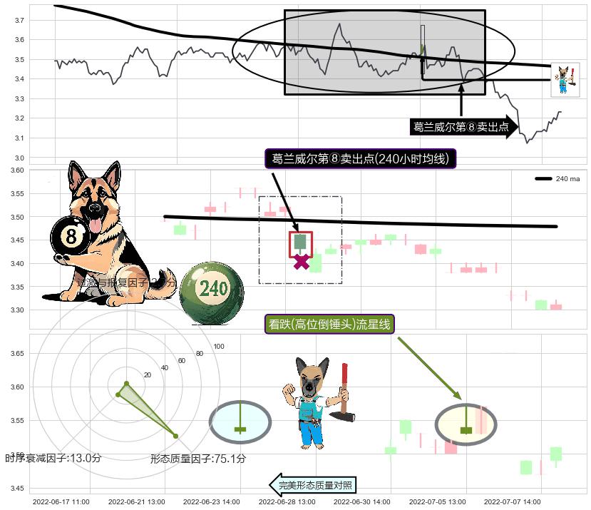 ➣ 2022-07-15 13:00:00-小时显现 葛兰威尔均线 240小时均线 第⑧卖出点 下降趋势的中继信号,后市看跌,卖出信号