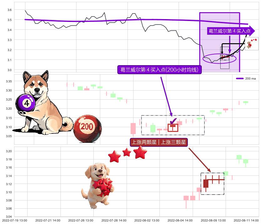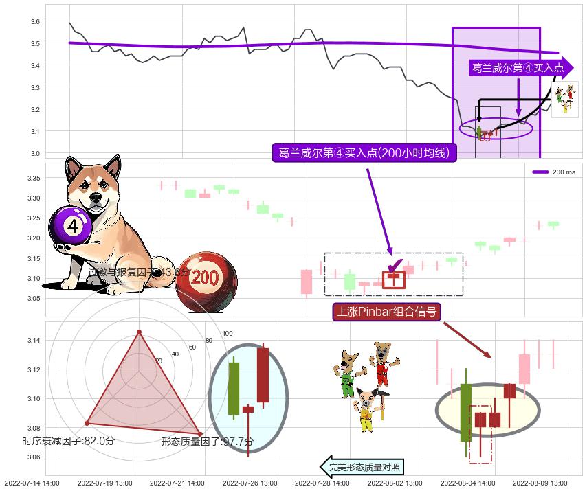 ➣ 2022-08-05 13:00:00-小时显现 葛兰威尔均线 200小时均线 第④买入点 下降趋势均值回复的短线反弹信号,后市看涨,买进信号