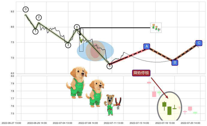 ➢ 🕰 价格走势在2022-07-15 13:00:00至2022-07-18 13:00:00期间形成降势停顿,残存影响值:2.87