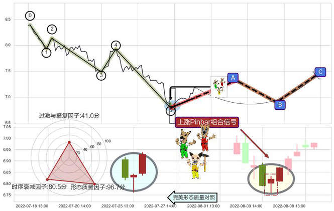 ➢ 上涨Pinbar组合信号 🔜 波浪理论下跌浪:浪5反弹拐点 综合量化分数:58.74 【偏多】