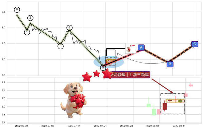 ➢ 🕰 价格走势在2022-08-05 00:00:00至2022-08-10 00:00:00期间形成上涨两颗星 | 上涨三颗星,残存影响值:6.13