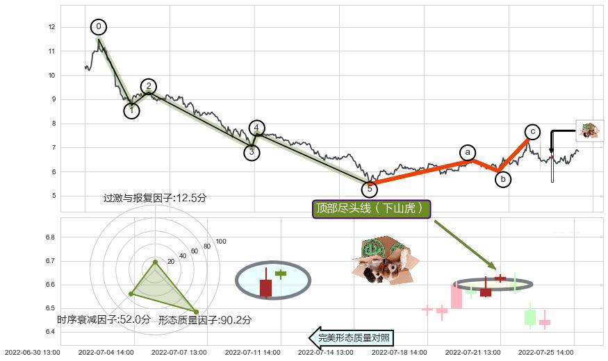 ➢ 🕰 价格走势在2022-07-20 14:00:00至2022-07-21 13:00:00期间形成顶部尽头线(下山虎),残存影响值:-3.51