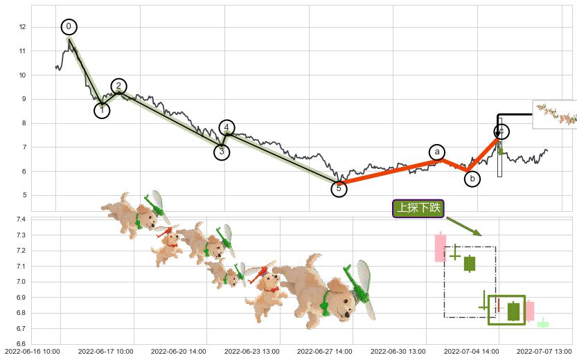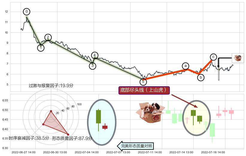 ➢ 🕰 价格走势在2022-07-14 13:00:00至2022-07-14 14:00:00期间形成底部尽头线(上山虎),残存影响值:3.29