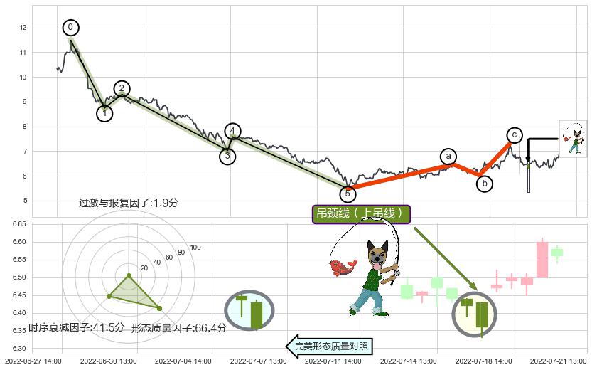 ➢ 🕰 价格走势在2022-07-15 13:00:00至2022-07-15 14:00:00期间形成吊颈线(上吊线),残存影响值:-2.40
