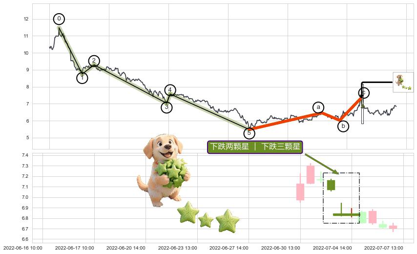 ➢ 下跌两颗星 | 下跌三颗星 + 波浪理论c点反弹终止反转下跌信号叠加后【反向回撤率】中等,【看空】信号叠加【存续影响中等】